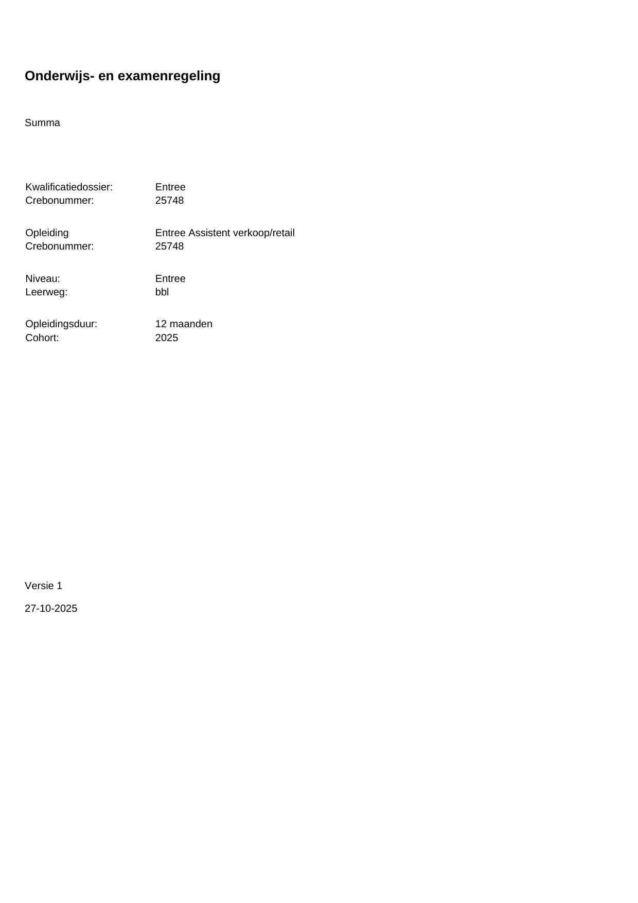 Entree Assistent verkoop/retail 25748BBL12.01 in cohort 2025-2026