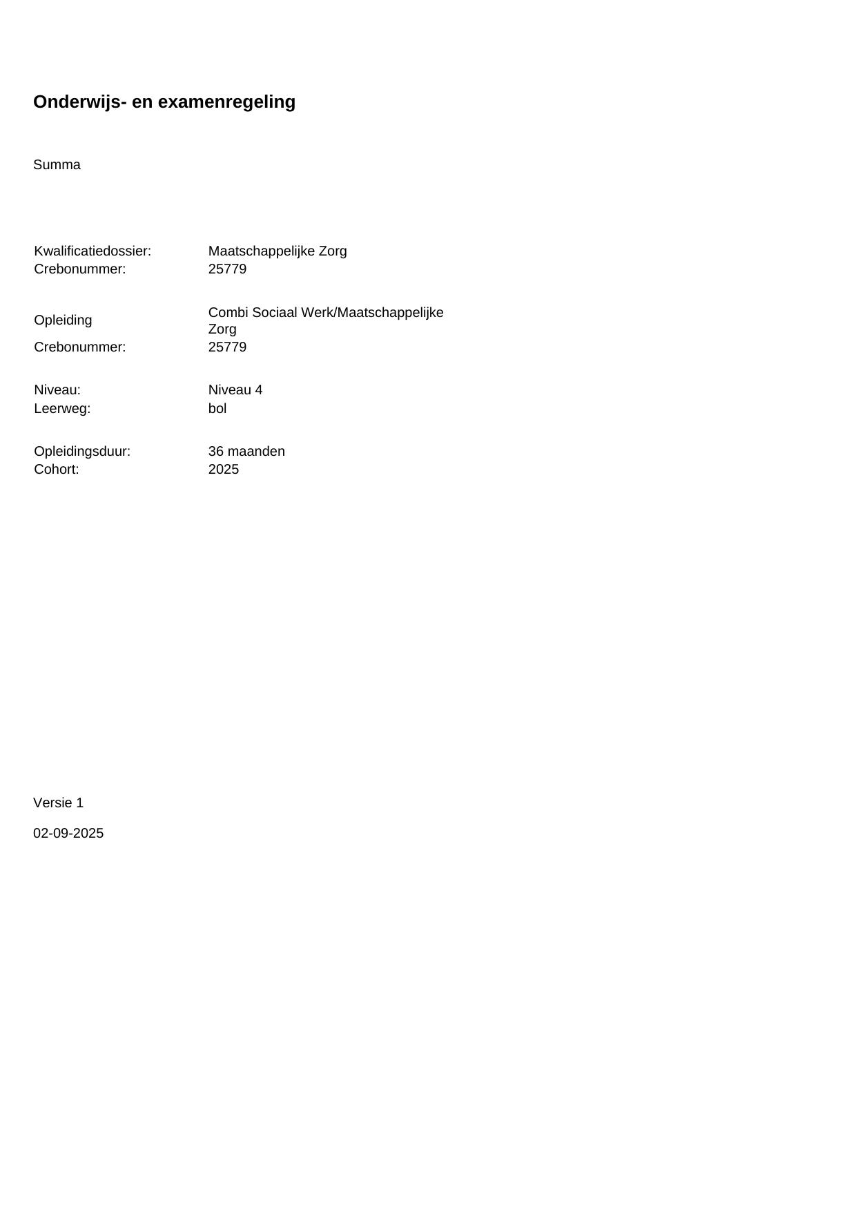Combi Sociaal Werk/Maatschappelijke Zorg 25779BOL36.02 in cohort 2025-2026