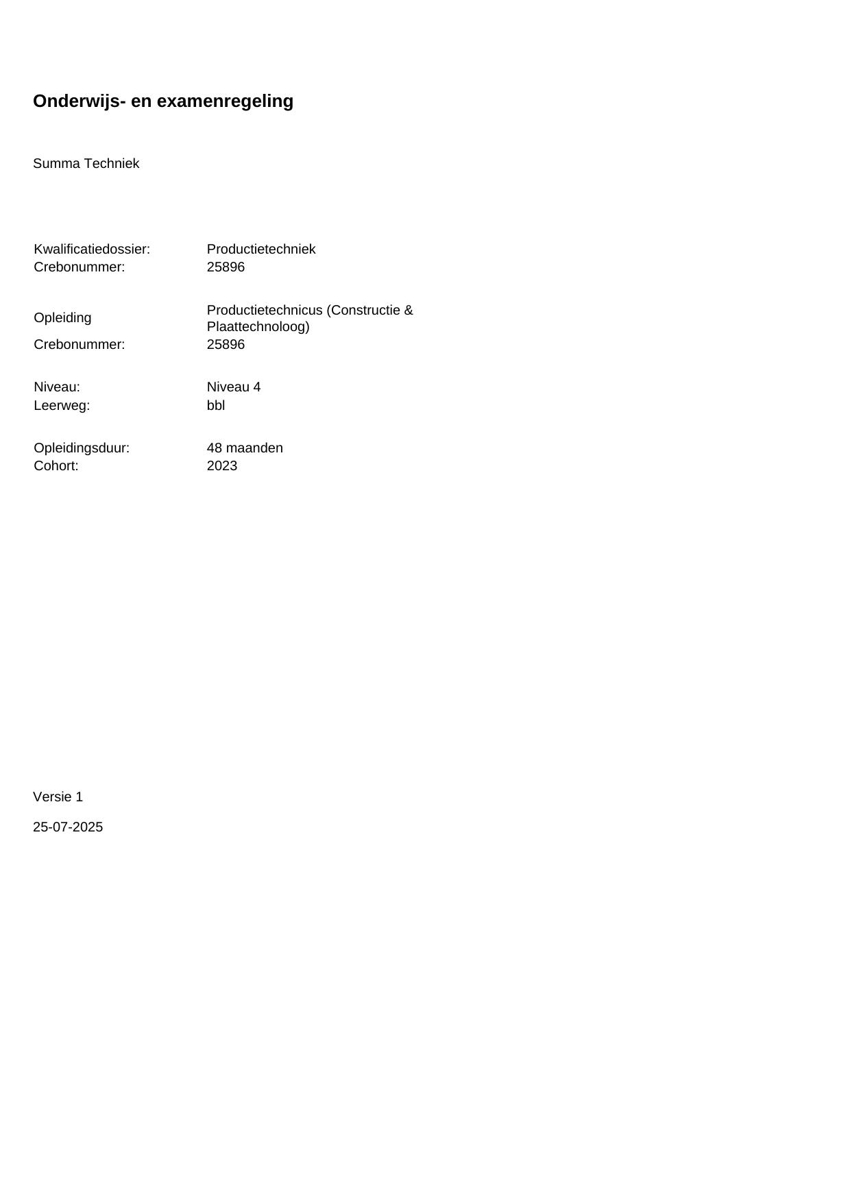 Productietechnicus (Constructie & Plaattechnoloog) 25896BBL48.02 in cohort 2023-2024