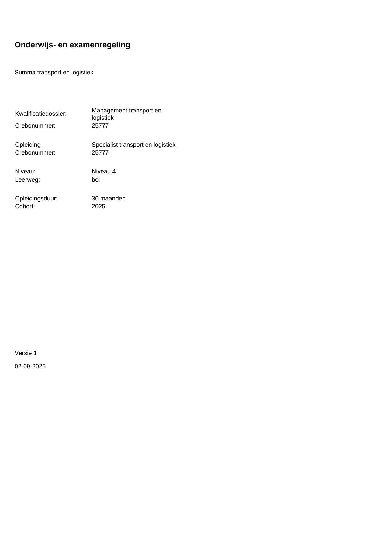 Specialist transport en logistiek 25777BOL36.01 in cohort 2025-2026