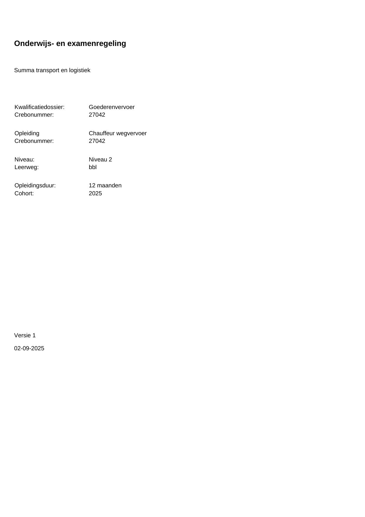 Chauffeur wegvervoer 27042BBL12.01 in cohort 2025-2026