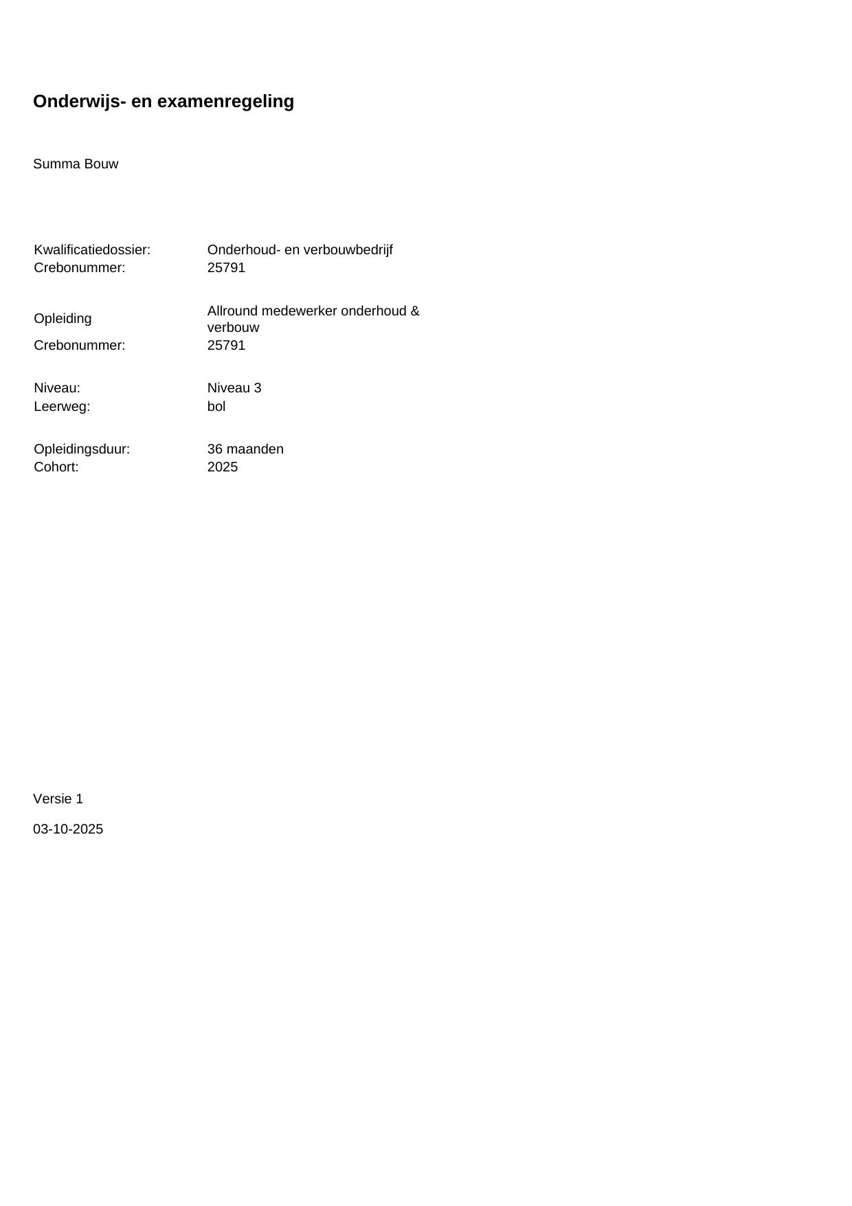 Allround medewerker onderhoud & verbouw 25791BBL36.01 in cohort 2025-2026
