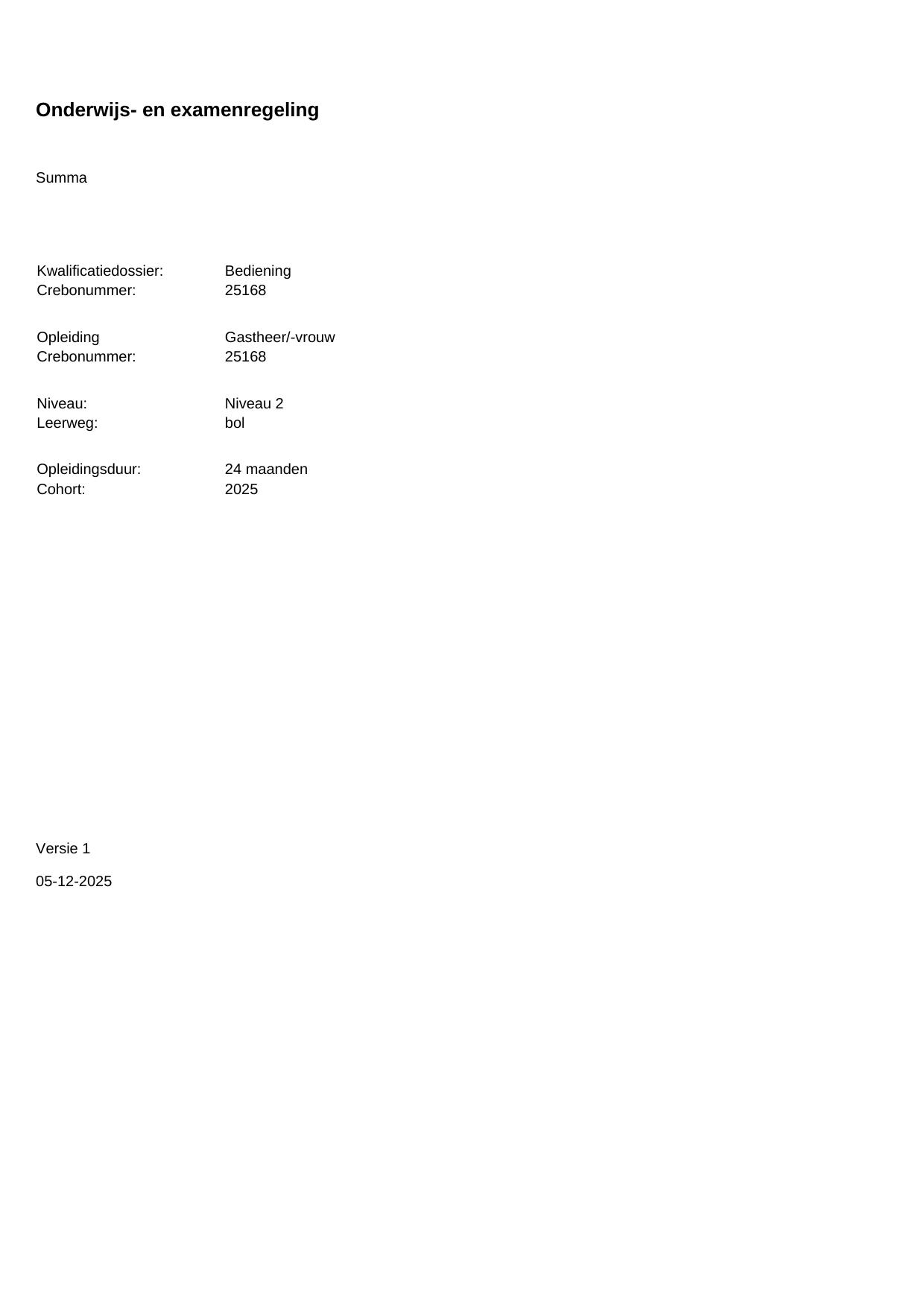 Gastheer/-vrouw 25168BBL24.01 in cohort 2025-2026