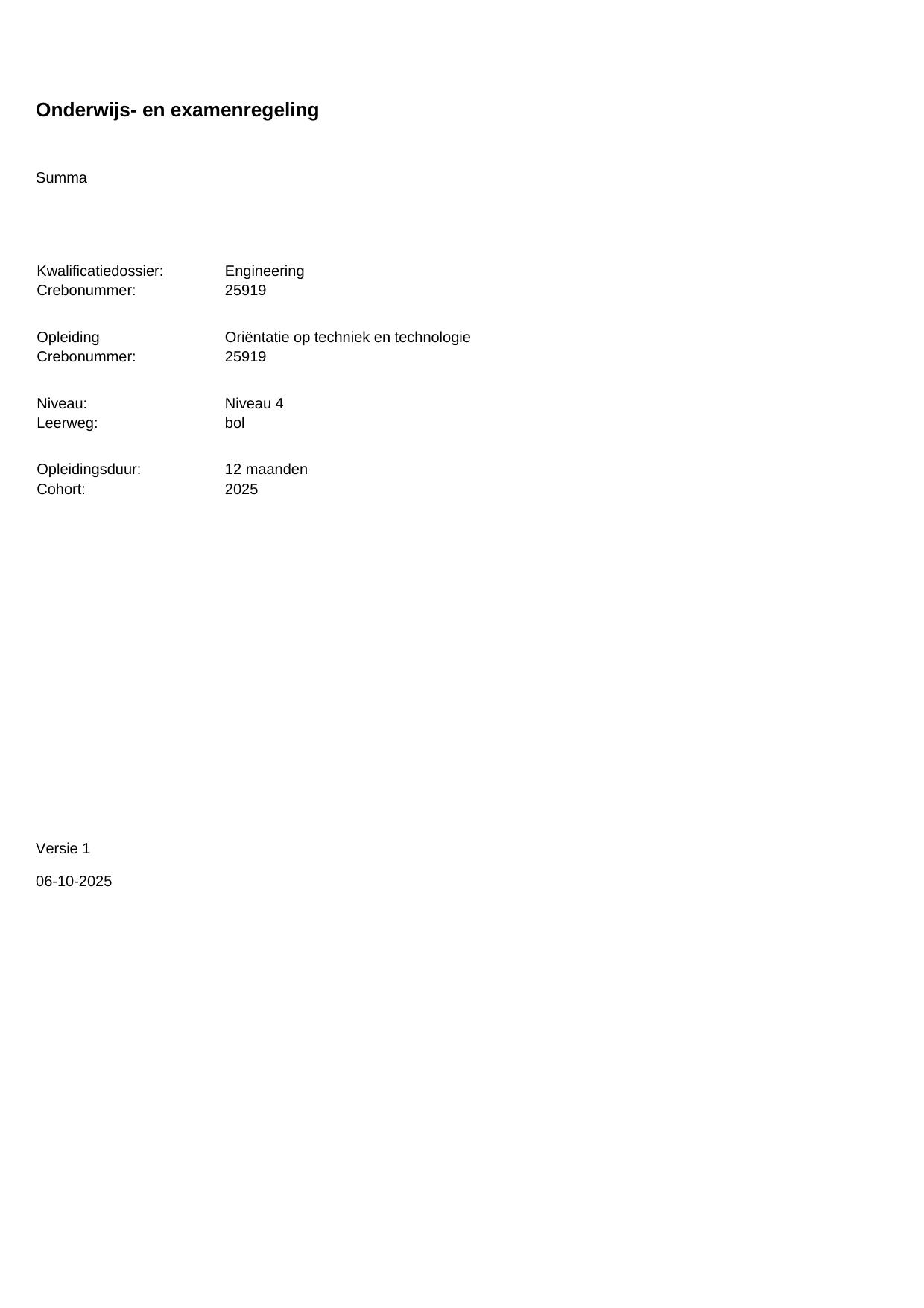 Oriëntatie op techniek en technologie 25919BOL12.01 in cohort 2025-2026