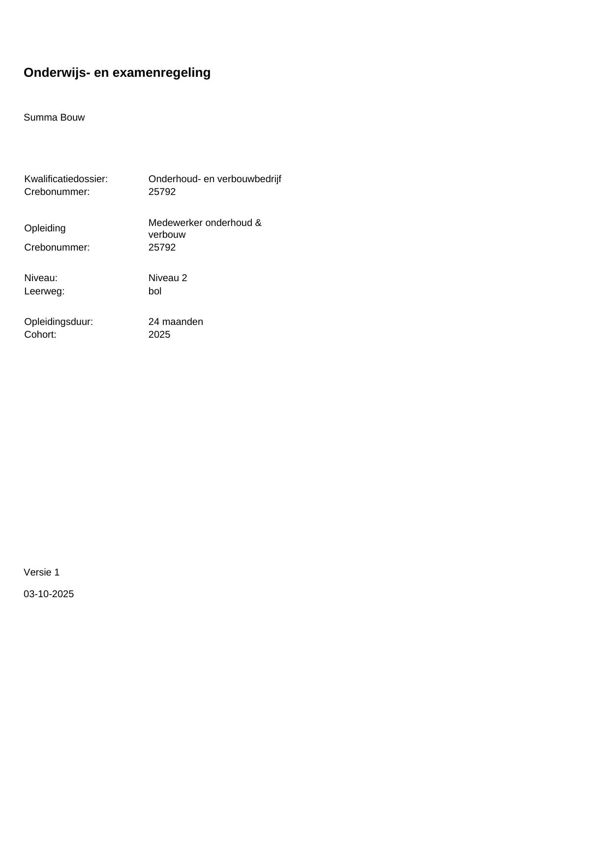 Medewerker onderhoud & verbouw 25792BOL24.02 in cohort 2025-2026