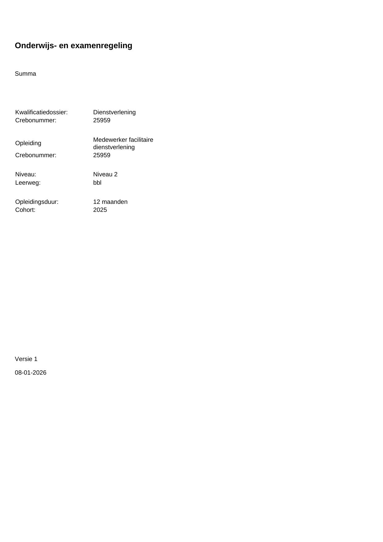 Medewerker facilitaire dienstverlening 25959BBL12.01 in cohort 2025-2026