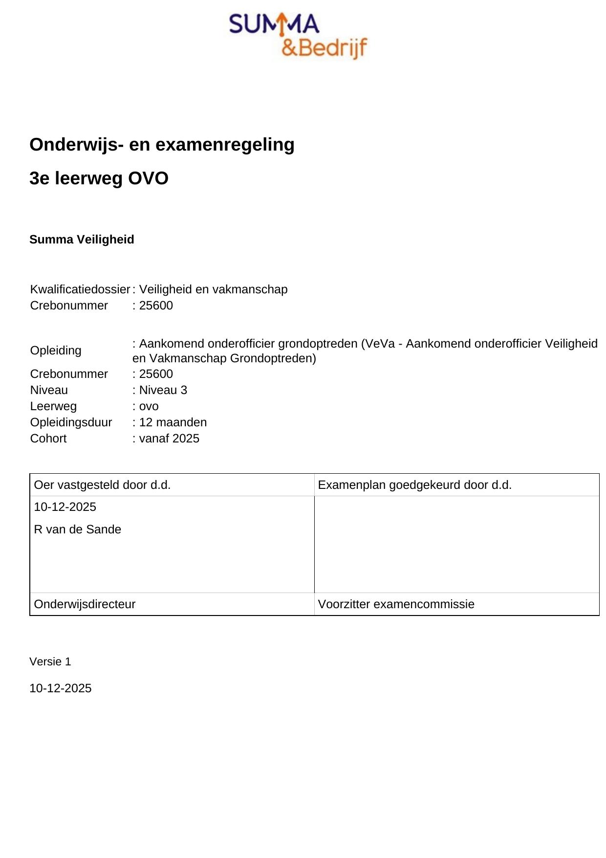 VeVa - Aankomend onderofficier Veiligheid en Vakmanschap Grondoptreden 25600OVO12.01 in cohort 2025-2026