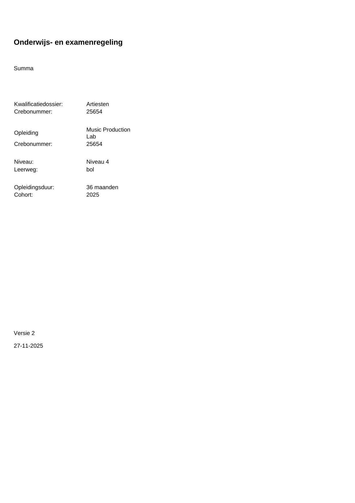 Music Production Lab 25654BOL36.03 in cohort 2025-2026