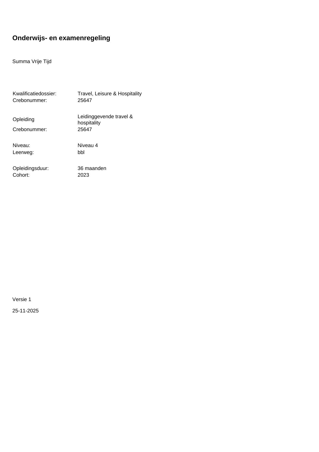 Leidinggevende travel & hospitality 25647BBL36.01 in cohort 2023-2024