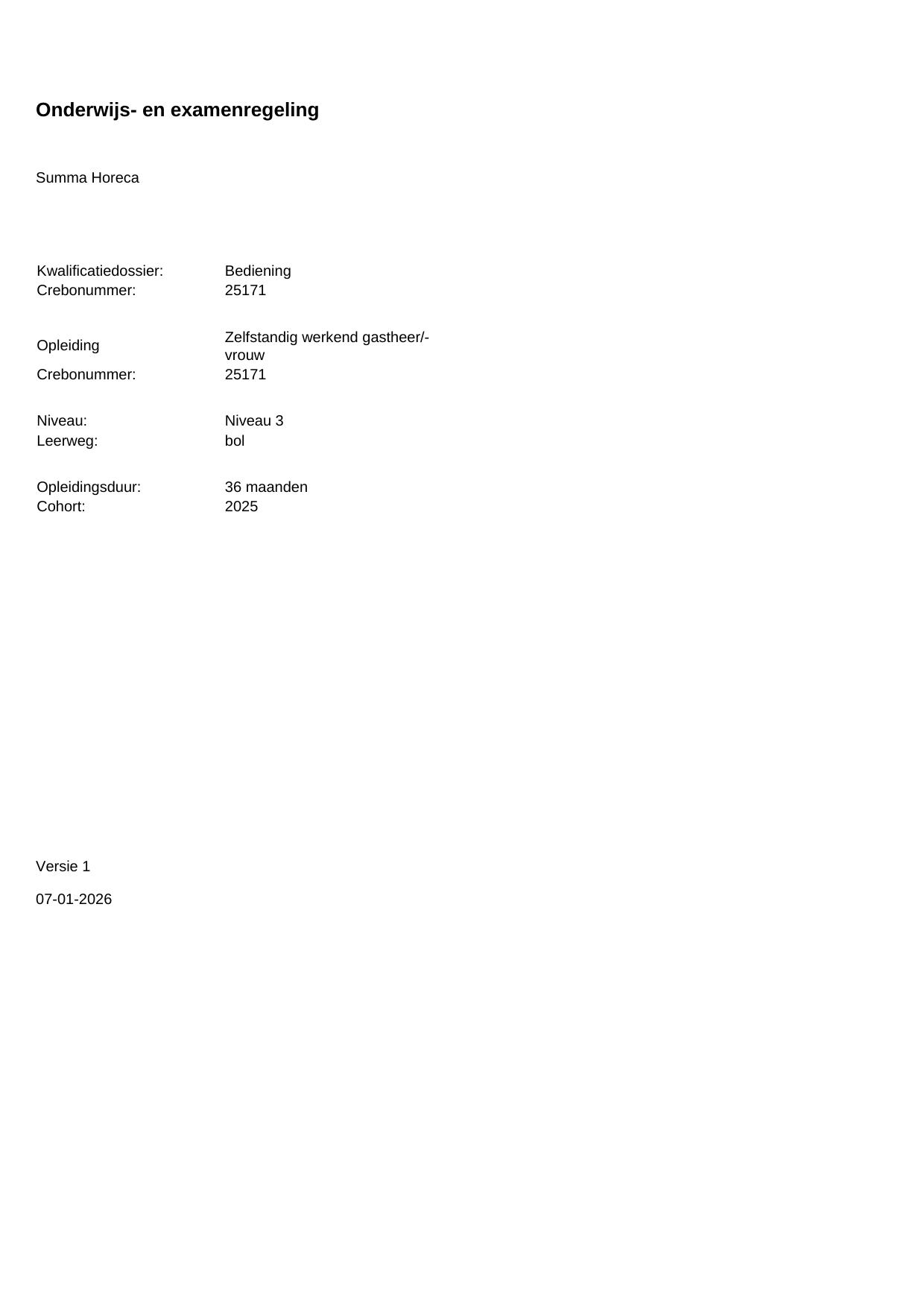 Zelfstandig werkend gastheer/-vrouw 25171BOL36.01 in cohort 2025-2026