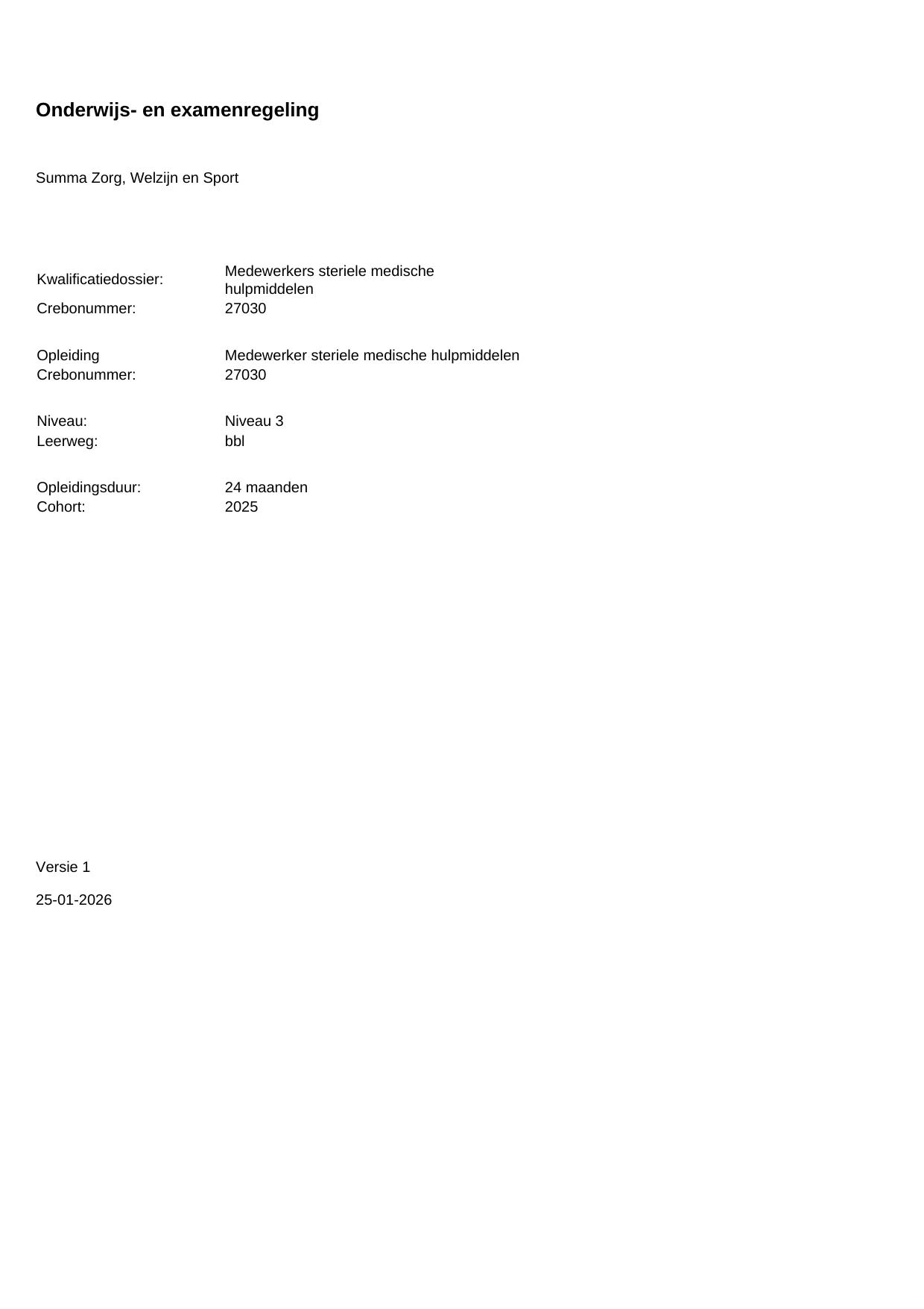 Medewerker steriele medische hulpmiddelen 27030BBL24.01 in cohort 2025-2026