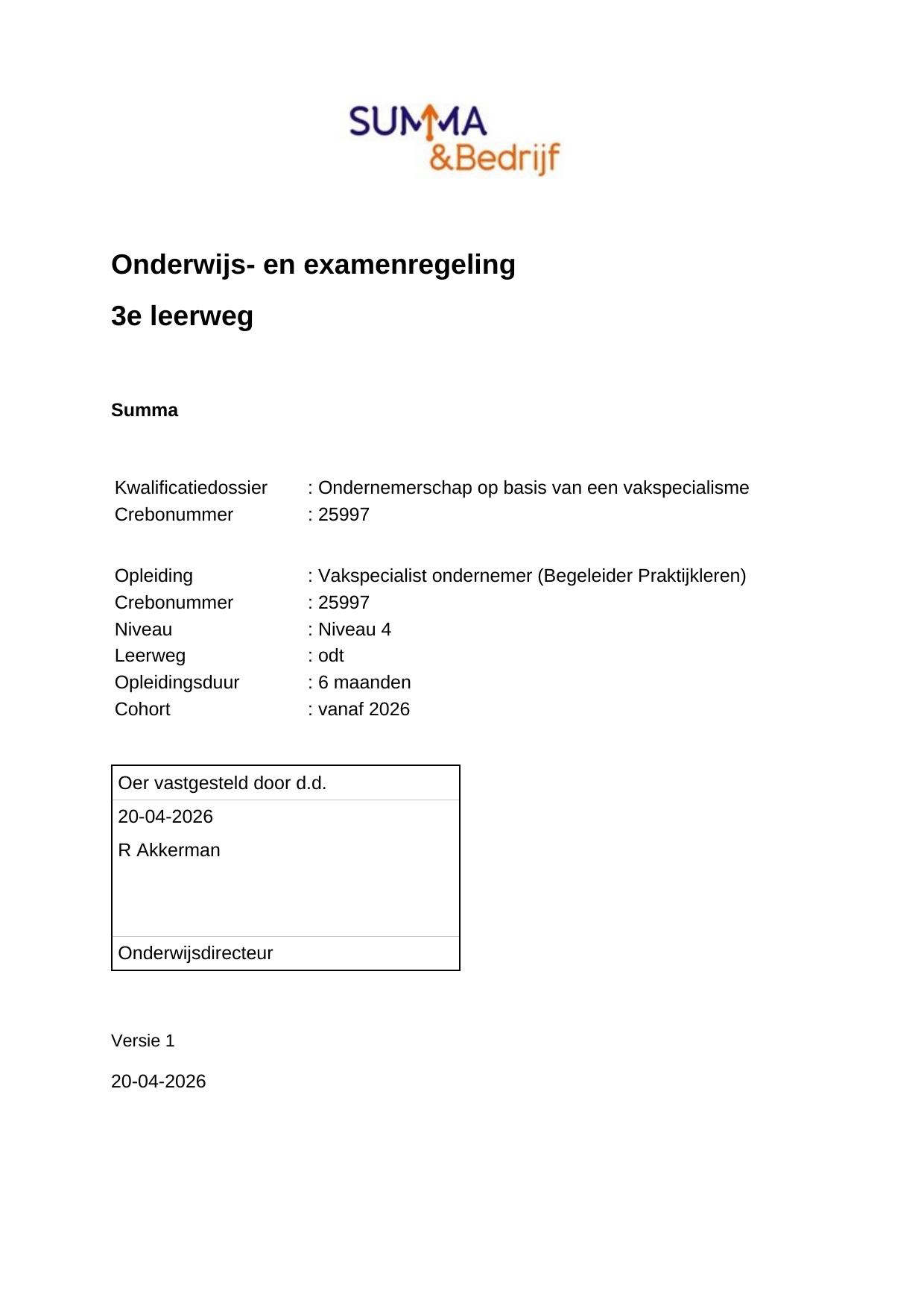 Begeleider Praktijkleren 25997ODT06.02 in cohort 2026-2027