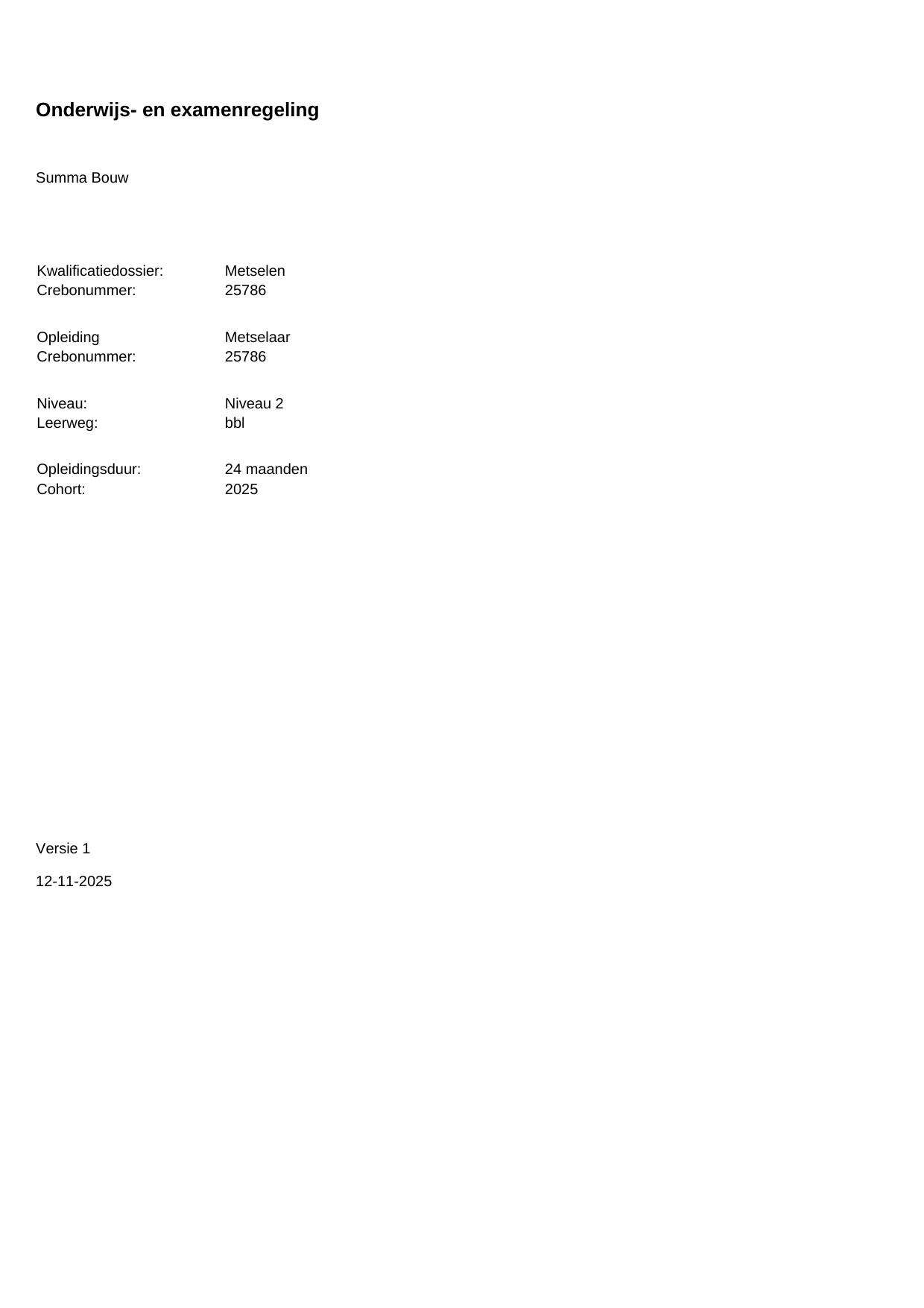 Metselaar 25786BBL24.01 in cohort 2025-2026