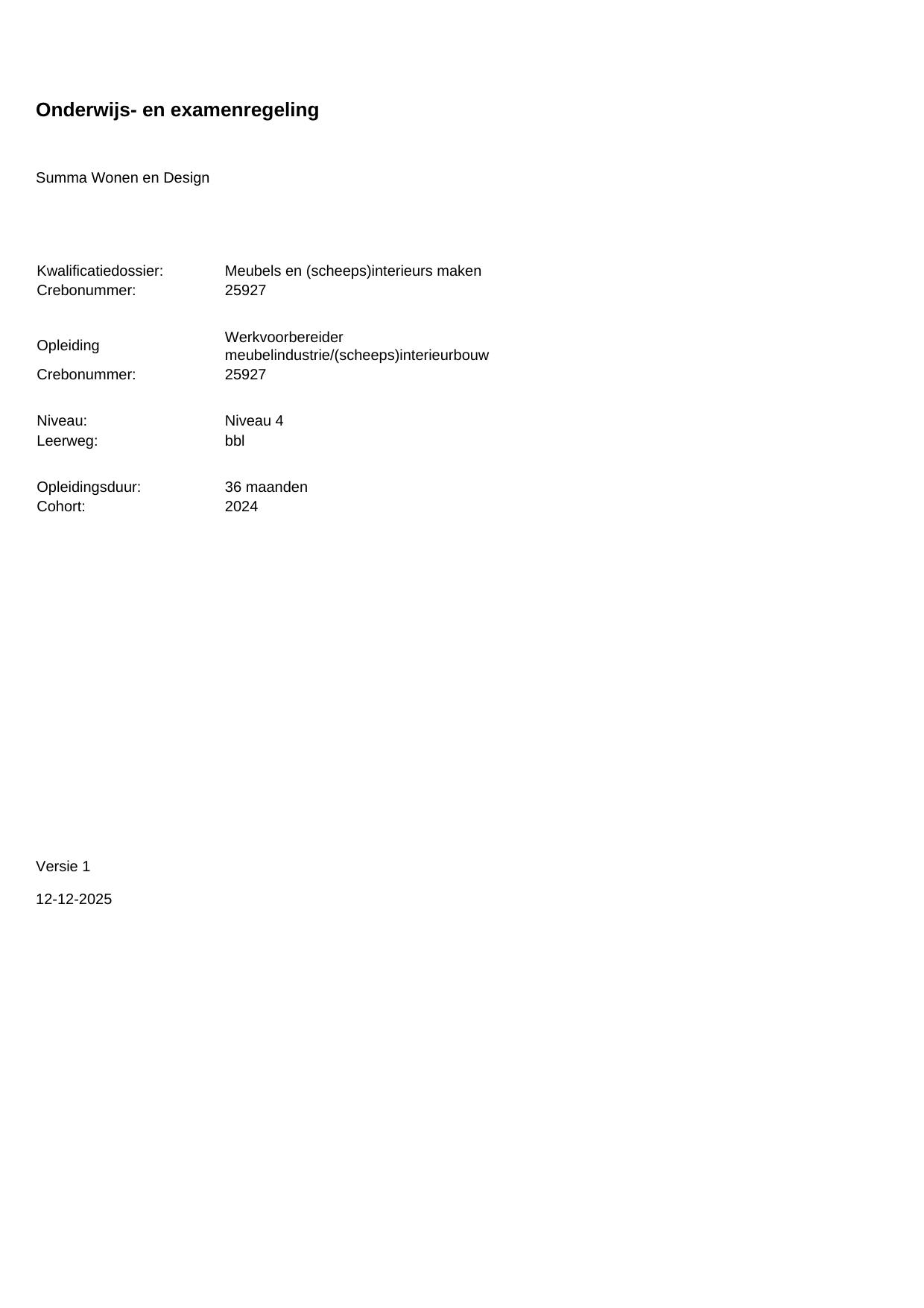 Werkvoorbereider meubelindustrie/(scheeps)interieurbouw 25927BBL36.01 in cohort 2024-2025