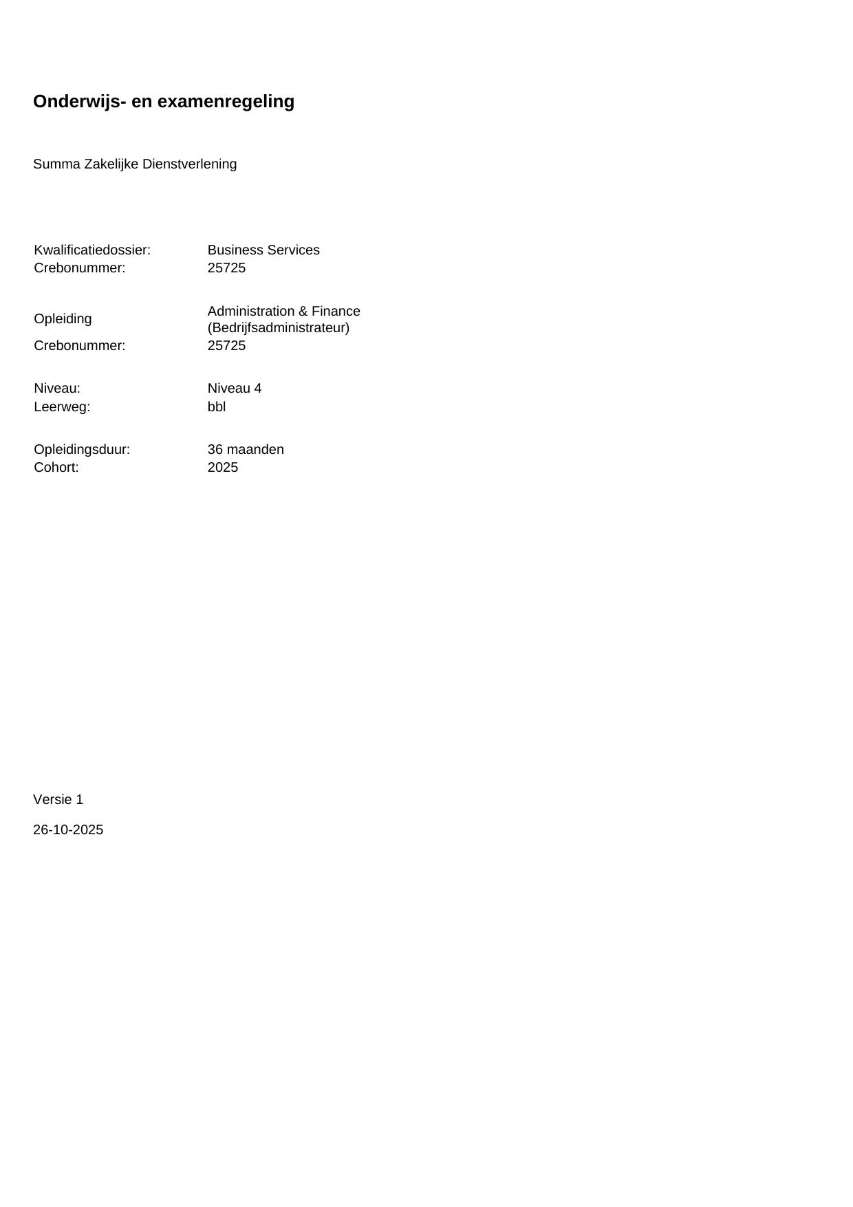Administration & Finance (Bedrijfsadministrateur) 25725BBL36.01 in cohort 2025-2026